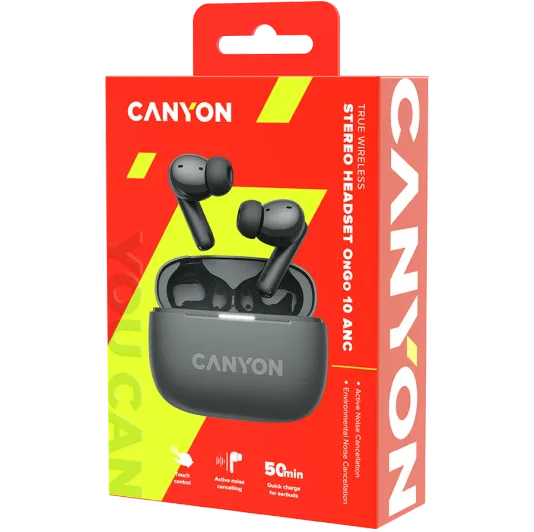 Έχετε ήδη δοκιμάσει αληθινά ασύρματα ακουστικά; Υπάρχει περίπτωση να μην κοιτάξετε πίσω με τα ακουστικά Canyon OnGo 10. Με το ενεργειακά αποδοτικό Bluetooth 5.3, προσφέρουν μεγάλο χρόνο αναπαραγωγής και σταθερή σύνδεση με τη συσκευή σας ακόμα κι αν δεν είστε κοντά. Ιδανικό για μουσική και κλήσεις χάρη στα τέσσερα μικρόφωνα: η ενεργή ακύρωση θορύβου διασφαλίζει ότι ακούτε αυτό που θέλετε να ακούσετε. Επιπλέον, ενεργοποιείται αυτόματα κατά την κλήση. Τα ακουστικά OnGo 10 ελέγχονται με την αφή και διαθέτουν φωνητικό βοηθό για να σας ενημερώνει για την κατάσταση των ακουστικών σας. Η θήκη υποστηρίζει τεχνολογία Quick Charge. Μπορείτε να φορτίσετε πλήρως τα ακουστικά σας σε μόλις 50 λεπτά. Κομψά και εργονομικά, αυτά τα ακουστικά TWS φαίνονται υπέροχα σε οποιοδήποτε χρώμα: μαύρο, βαθύ μπλε ή μπεζ. Προσθέσαμε ακουστικά σε τρία μεγέθη για να κάνουμε την εφαρμογή ιδανική για εσάς. Διαλέξτε ένα σήμερα και φέρτε χαρά στα αυτιά σας!